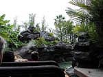 木々が大きく繁り歴史を感じる ジュラシック・パークエリア。このエリアも大変広い。キャンプ・ジュラシック、と言った子供のエリアがある。今日初めてのアトラクション「ジュラシック・パーク・リバー・アドベンチャー」に乗る。待ち時間無し。スパイダーマンと大違い。日本と違うのはコースが右回りで少し勝手が違う感じだがほとんど同じ、ラストのティラノサウルスが少し早く登場しゆっくり見れる。
