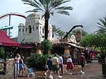 次にザ・ロスト・コンチネントエリアに移動。 すぐ「ザ・フライング・ユニコーン」の子供用ジェットコースターがある。さらに進むと「デュエリング・ドラゴンズ」のこれまた過激なぶら下がりコースター見える。2連のコースターがスレスレで交差しながら走る。写真を撮りながら乗り口の近くまで行く。ファイアーとアイスの二つのコースターが同時にスタート、ところどころ交差しながら進む。悲鳴と歓声が大きく聞こえる。今回はこれもパス。ジェットコースターは苦手。 ここらあたりで時間は11時頃。