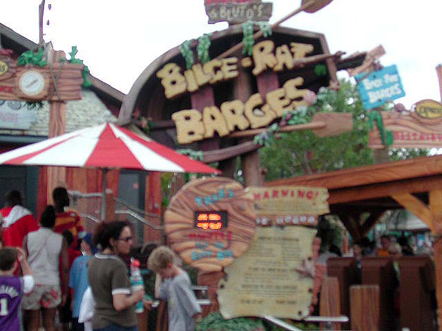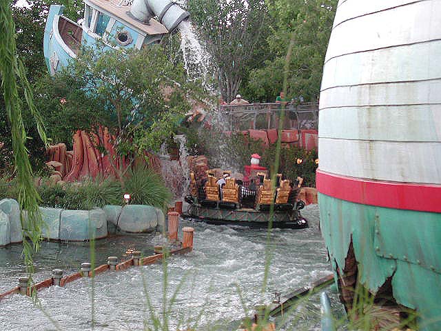 「ポパイ&ブルートズ・ビルジラット・バージス」 朝、通り過ごしたポパイの急流下り「ポパイ&ブルートズ・ビルジラット・バージス」 に向かう。全員ビショぬれ。見学するだけでこれもパス。それにしてもビショ濡れがアメリカ人は空き見たいだ。コースの途中の船の上からゲストが下を通る円形ボートに大型の水鉄砲で水をかけると言った趣向もあり皆楽しんでいる。