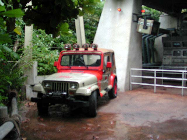 トリケラトプス・エンカウンターを見る その後、ジュラシックエリアに向かい、トリケラトプス・エンカウンターと言うATを見る。ジャングルの中を進む、係員が居るところで少し待ってから、森の中を少し進む。そこには木造の建物がある中に入ると実物大のトリケラトプスが飼育されている。うまく作られた動く恐竜だがもう一つと言った感じ。